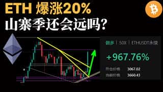 比特币行情分析,ETH爆涨20%,山寨季或将到来(BTC/ETH/比特币/以太坊/bitcoin/ethereum行情分析)