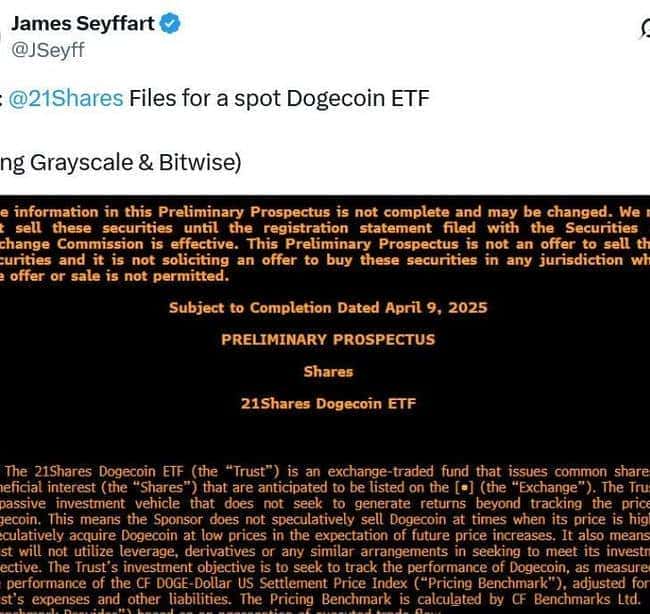21Shares提交美国现货狗狗币ETF申请,引领加密货币投资新风潮!