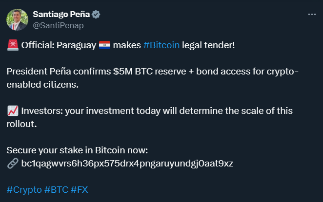 突发!巴拉圭总统账号遭黑客入侵,比特币法币化声明竟是惊天骗局