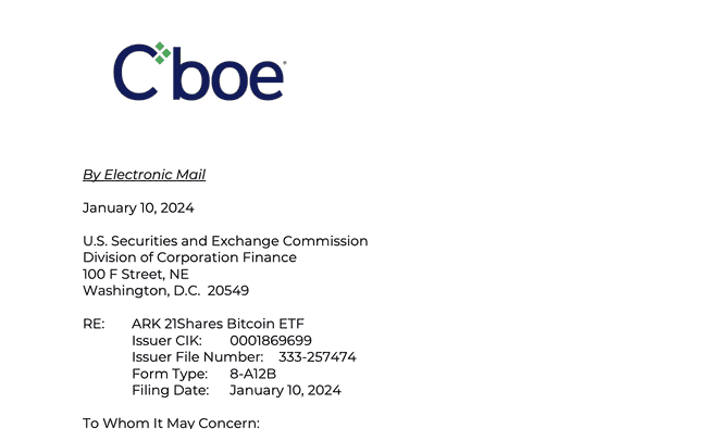 SEC官宣:Cboe批准多款比特币现货ETF上线,方舟VanEck、富达、景顺、富兰克林、WisdomTree等入列