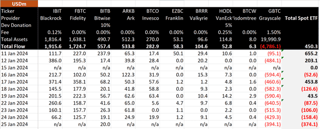 自从灰度的比特币信托基金(GBTC)成功转型现货 ETF 之后,GBTC 资金外流所导致的比特币下行压力就从未消失。根据 BitMEX 的统计数据显示,昨日 GBTC 又再度流出近 4 亿美元的资金。