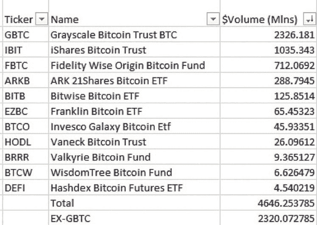 不过,虽然单日净流入 4 亿美元,但如果将 GBTC 计算进去,大概率会由正转负。据统计,GBTC 昨日的交易量约 23 亿美元,且分析师推测其中大多数交易都是出售。