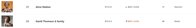 如果以富比士实时亿万富翁榜单排名,中本聪持有价值 751 亿美元的比特币,能够位列财富榜第 22 位,介于沃尔玛继承人 Alice Walton 和《路透社》董事长 David Thomson 之间。