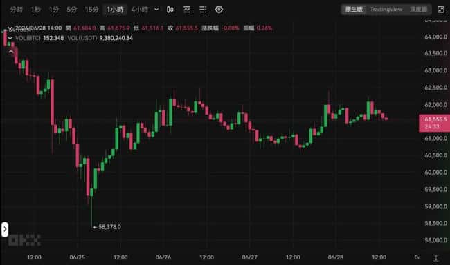比特币在本周二最低跌破 5.9 万美元后,连日来持续挑战想站稳 6.2 万美元之上,可惜涨势都无以为继,目前仍在 61,000~62,000 美元间震荡。