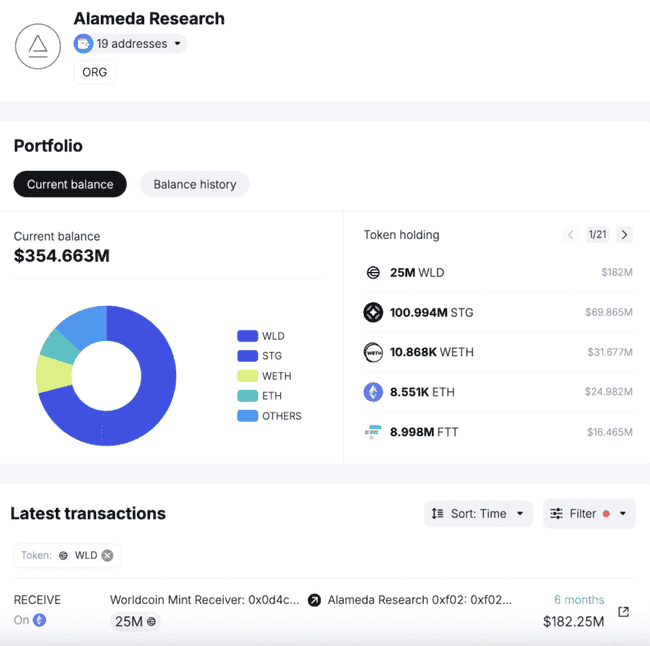 Alameda Research WLD持仓价值半年飙升四倍,仍持2500万颗