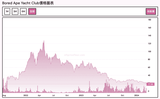 与此同时,无聊猿(BAYC)的表现也不尽理想。过去一周从 22 ETH 下跌至 17.66 ETH,跌幅近 20%,续创近几年来的新低。