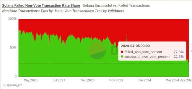 事实上,自去年 11 月以来,Solana 的交易失败率一直保持在 50% 左右,如果你回顾一下我上面列出的失败与成功图表,你会发现之前的情况也差不多。