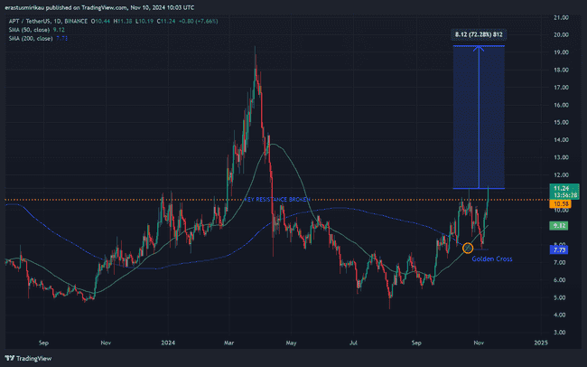 Aptos代币APT看涨趋势显著,黄金交叉与技术指标共振