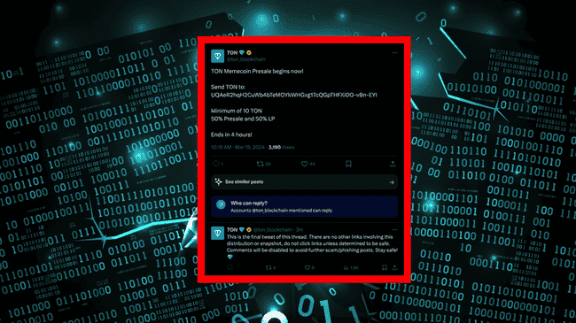 TON 公链官方推特账号遭黑客攻击,请勿点击任何可疑链接或进行转账。