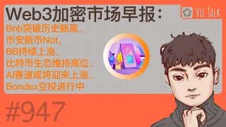 Web3加密市场早报:Bnb创历史新高,Not、BB持续攀升,比特币生态强势,Ai赛道看好,Bondex空投火热,Vic TALK第947期开讲