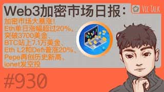 Web3加密市场日报:Eth单日涨幅超20%突破3700美金,BTC站上7.1万美金,Defi普涨20%,Pepe创新高,Ionet发空投,Vic TALK第930期