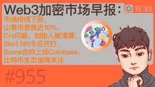 Web3加密市场早报:市场持续下挫,山寨币普跌近10%,Crv闪崩创始人遭清算,Slerf Nft今日开打,Bome合约上线Coinbase,比特币生态引关注
