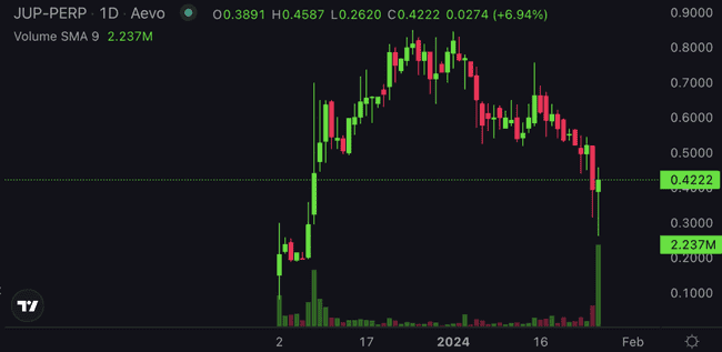 Solana 的去中心化交易所 Jupiter 已确认将于 1 月 31 日推出 JUP 代币。这次空投总共将分发 10 亿颗 JUP 代币给平台早期用户,目前 JUP 的盘前交易价格约为 0.42 美金,以此价格计算,空投估值约为 4.2 亿美金。