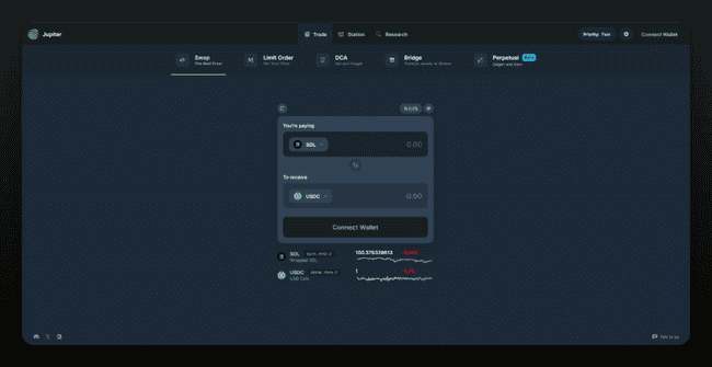 - 开启 Treasury – > 交易 – > 使用 SOL 和 USDC