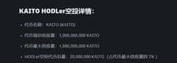 KAITO将推出U本位永续合约,并提供1-75倍杠杆交易,这意味着在短期内,市场波动可能会更加剧烈。KAITO的总供应量为10亿枚,其中8.3%分配给了早期支持者,意味着市场上流通的代币量相对较少,这也为价格的波动提供了空间。