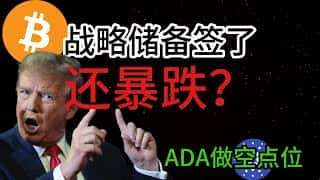 比特币暴跌背后:战略储备协议签署后的市场分析及ADA做空策略