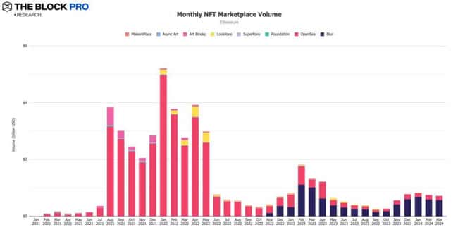 5.3 月以太坊链上 NFT 市场交易金额下降了 3.6%,达到约 7.26 亿美元。