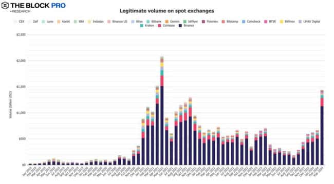 6. 合规中心化交易所(CEX)的现货交易金额在 3 月持续表现上涨态势,涨幅达到惊人的 115.8%,升到 1.44 兆美元。