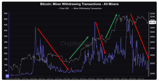 内容提要:CryptoQuant执行长Ki Young Ju称比特币哈希价格创新低,矿企放缓投资并转向挖其他PoW代币以应对市场不确定性。他认为这只是对冲行为,并非长期看跌。同时,小型矿商放弃挖矿被视为牛市前兆,且矿工卖压已减弱,预示Q3加密货币市场可能上涨。比特币价格近期有所波动,但已部分恢复。