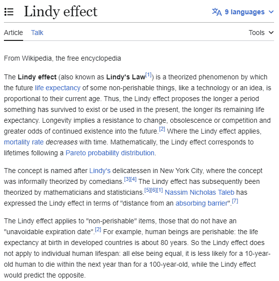 由于比特币的程式码库存在了数年甚至数十年,它变得更加坚固并受益于林迪效应。