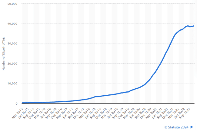 根据 Statista 的资料,全球比特币 ATM 数量从 2015 年到 2022 年也增加了 100 倍以上: