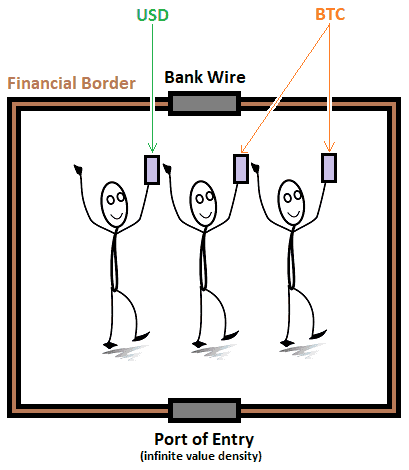 此外,只要拥有私钥,某人就可以在全球范围内携带无限量的比特币和稳定币。他们可以将其写在行李中,储存在装置上,记住代表金钥的十二个单词,或者将其临时贴上在受密码保护的加密云档案中,从而通过任何入口带来无限的价值密度。