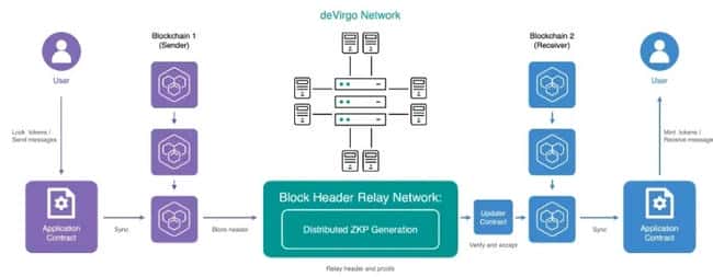 zkBridge 作为 Polyhedra Network 的核心产品,它被设计为一个无需信任的跨链桥。zkBridge 使用 zkSNARK 使证明者能够有效地让接收的链确认传送者链上发生了某种状态转换。它由区块头中继网路和更新合约组成。通过模组化设计,zkBridge 实现了几项有用的功能,包括讯息传递、代币转移以及在不同链上的状态变化上执行的其他计算逻辑。