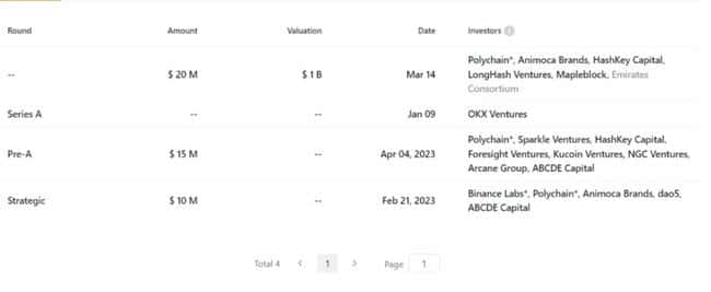 - 23 年 2 月为第一轮融资,获得了由 Binance Lab 和 Polychain 共同领投的 1 千万美金。