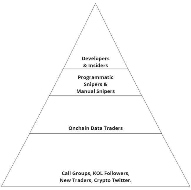链上交易是一场开发者、狙击者、链上资料交易者和其他人的流动性游戏。随著链上领域进入的流动性减少,参与者之间的竞争变得更加激烈,结果是金字塔顶端的那些人收获了大部分的回报。